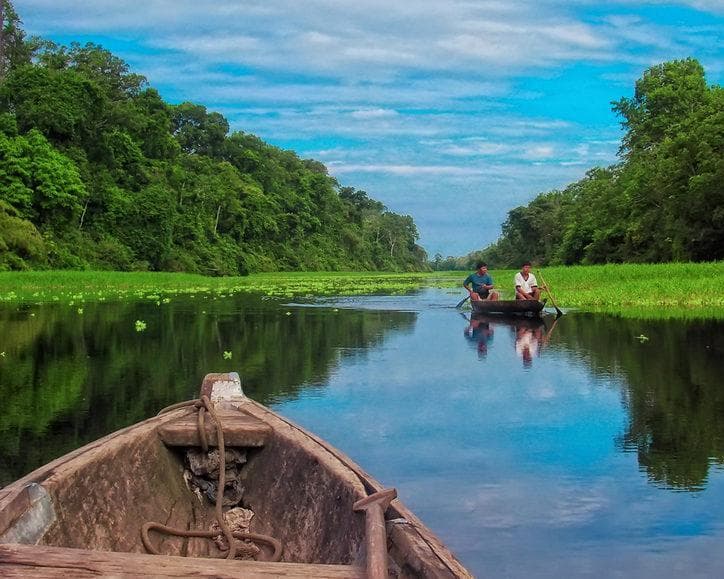 09:30 hrs A hora coordinada, recojo del hotel para iniciar el tour, partiremos desde el puerto de San Juan (Caserío) en la laguna Yarinacocha; navegaremos por la laguna, hasta el caño de Alejandría, donde podremos apreciar la hermosa flora y fauna de esta selva, el serpenteante tributario no llevara hasta el río Ucayali, donde podremos apreciar la inmensa belleza que tiene este principal tributario que tiene el Río Amazonas, siendo conocidos por nuestros ancestros como el Padre del amazonas o Apu Paru.